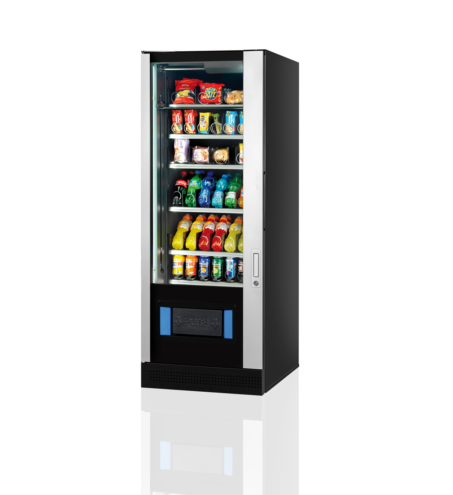 • Bis zu 6 Produktsortimente: flexible Bestückung mit Snacks, Süßwaren oder kleinen Lebensmitteln